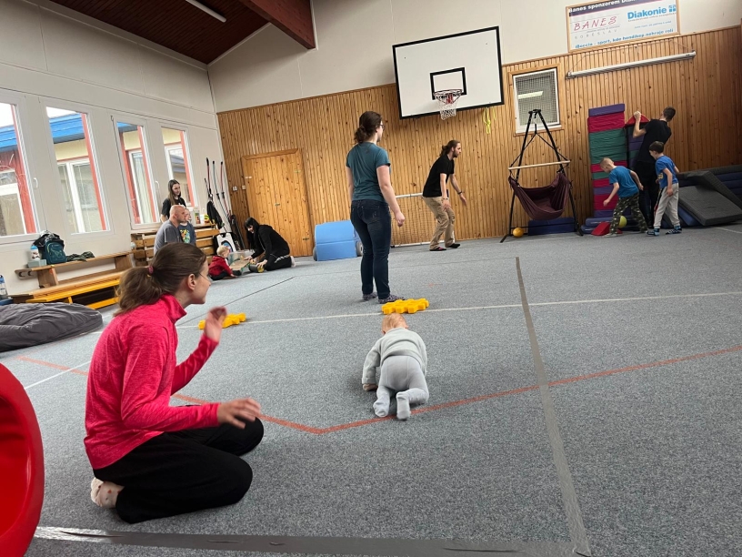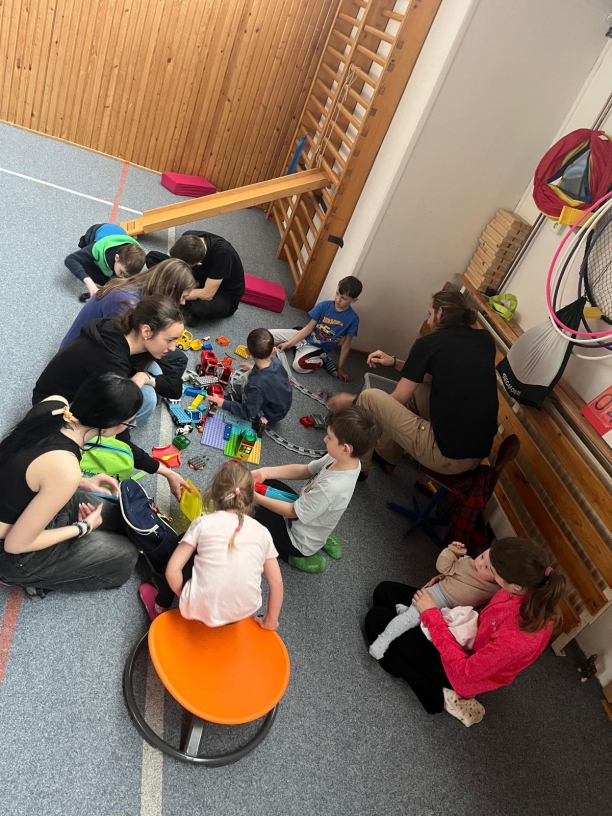 Aby se rodiče mohli plně soustředit na čerpání nových informací a sdílení svých zkušeností, o děti se staraly skvělí dobrovolníci. Dobrovolníci z Dobrovolnického centra Diakonie ČCE - Středisko Rolnička v tělocvičně připravili pro děti hry a zajistili, aby si odpoledne děti užily a potkaly se s novými zážitky.